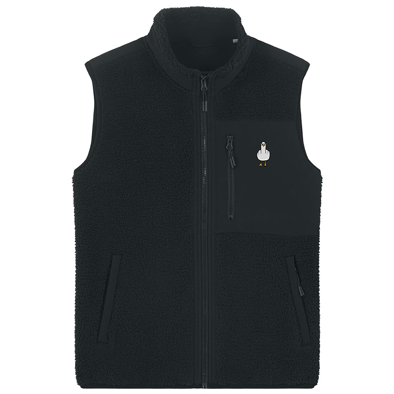 Diese Teddyweste bringt nordische Coolness und eine Prise frechen Charme zusammen. Mit dem markanten Möwen-Design, das schelmisch den Mittelfinger zeigt, setzt du ein mutiges Statement – ohne dabei die Leichtigkeit und Lebensfreude der Küste zu verlieren.