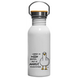Hochwertige Verarbeitung aus langlebigem Edelstahl garantiert dir eine rostfreie Nutzung. Die Flasche begleitet dich lässig bei jedem Abenteuer – ob Strandspaziergang, Büroalltag oder Outdoor-Ausflug. Der praktische Tragehenkel macht den Transport kinderleicht und das spezielle Design sorgt für gute Laune bei jedem Schluck.