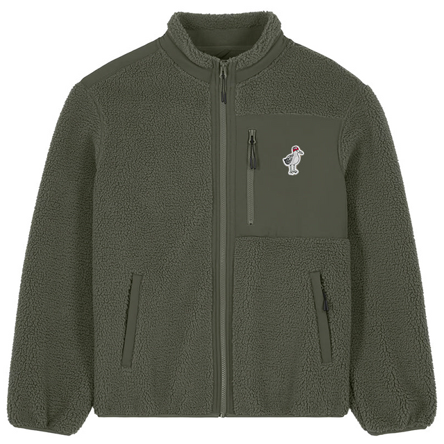 Der Sherpa-Fleece sorgt für angenehmen Komfort, während kontrastierende Softshell-Details an Brusttasche, Rückenpasse und Kragenband der Jacke einen modernen, maritimen Touch verleihen. Praktische Seitentaschen mit Reißverschluss und die hochwertige Verarbeitung machen sie zu einem vielseitigen Begleiter – stilvoll, nachhaltig und funktional zugleich.