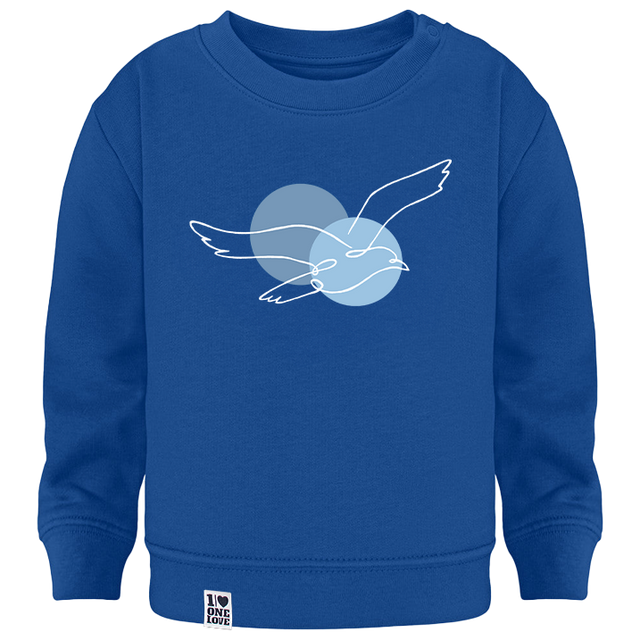 Bringe die unendliche Weite des Meeres und die Leichtigkeit einer Möwe direkt in das Leben deiner Kleinen. Tauche ein in die Magie des maritimen Lebensgefühls mit unserem Möwe Sweater in sanftem Himmelblau. Perfekt für kleine Abenteurer, die es lieben, den Wind des Meeres und die Freiheit zu spüren – selbst an Land!