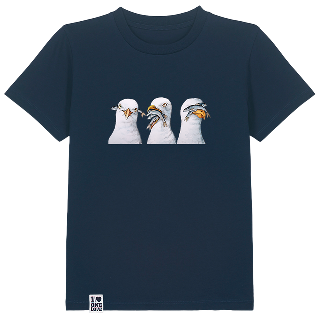 Erlebe das Gefühl von Freiheit, mit den Möwen über den Himmel zu tanzen! Dieses einzigartige "Möwen - T-Shirt KIDS" bringt die maritime Brise direkt in den Alltag unserer kleinen Meerverliebten. Mit einem Print im charmanten Möwen-Design in herrlich maritimen Farben lässt es die Herzen der Kleinen höher schlagen.