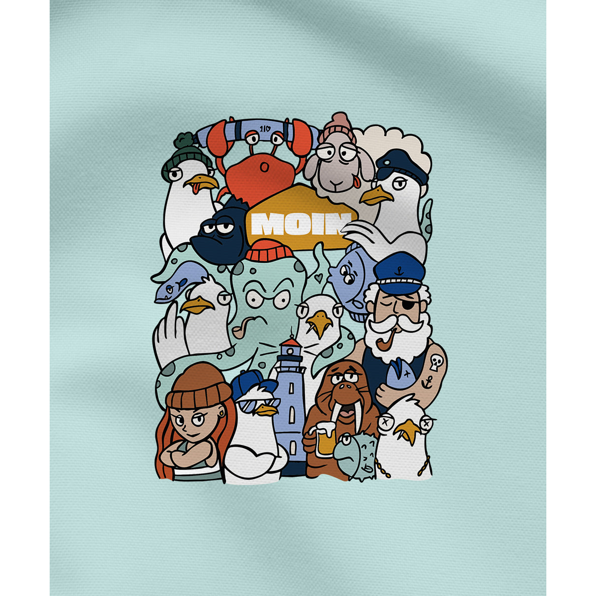 Das Moin Collage Herren T-Shirt von ONELOVE verkörpert die Schönheit und Freiheit der Küstenregionen Norddeutschlands. Mit seinem stilvollen Caribbean Blue und einzigartigen Design, das maritime Elemente und nordische Sprüche als Collage vereint, begleitet es dich auf deinen täglichen Abenteuern und bringt Meerzeit in deinen Alltag.