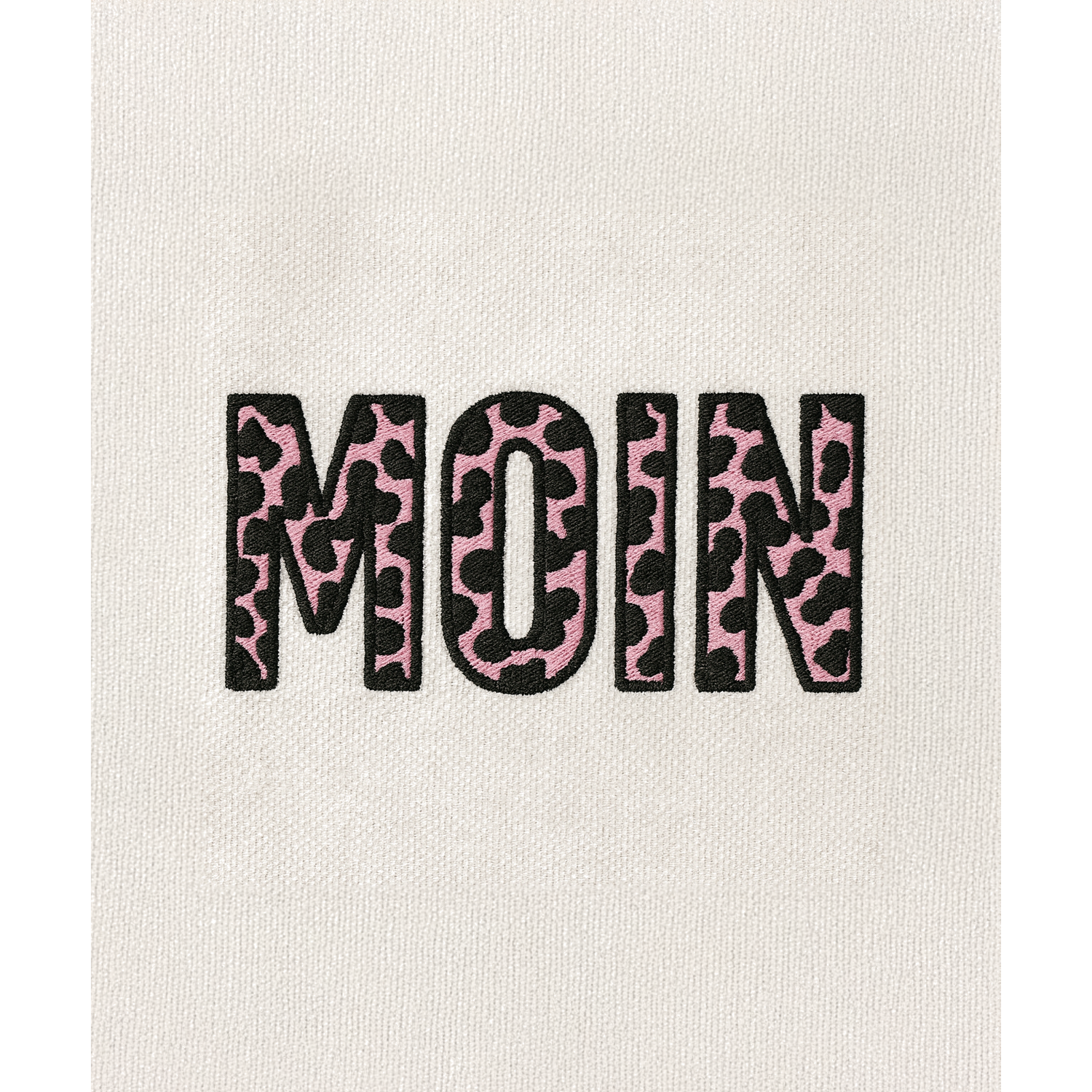 - Der „MOIN“-Schriftzug in moderner Textur-Optik setzt ein liebevolles Statement