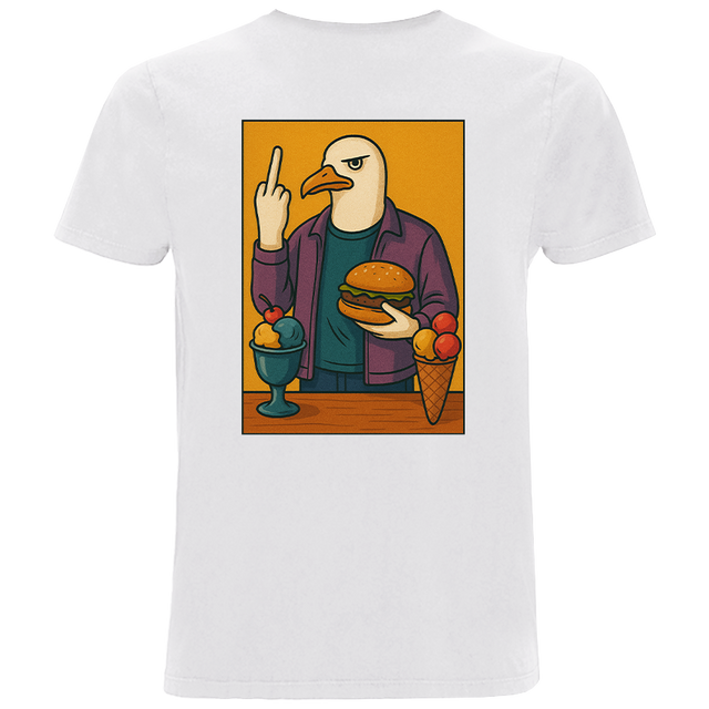 Dieses »Frech & Cool« Herren Shirt verkörpert maritimen Humor mit einem frechen Möwenmotiv und garantiert dir Aufmerksamkeit – auf der Straße oder am Strand.