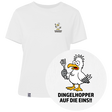 Mit unserem "Dingelhopper" Damen Shirt trägst du nicht nur ein Kleidungsstück – du zeigst deine Liebe zum nordischen Humor und die Freude am Leben. Der lustige, schelmisch-schielende Vogel mit Grillbesteck in der Flügelklaue bringt sofort ein Lächeln auf die Lippen und macht dich zum Highlight auf jeder Feier oder beim entspannten Zusammensein mit Freunden.