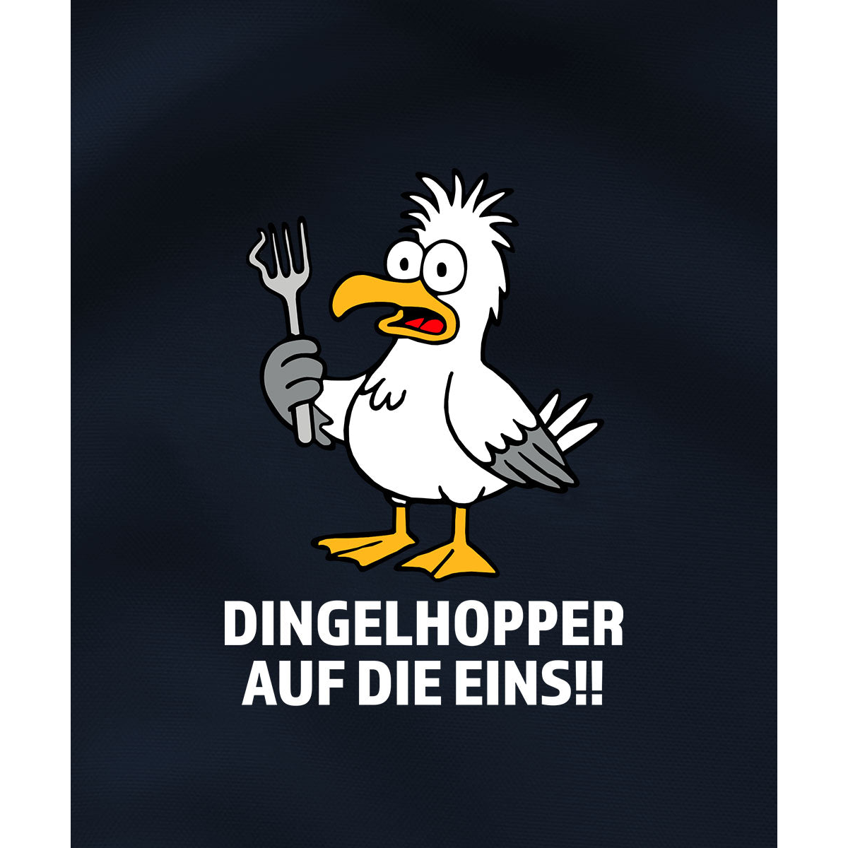 - Einzigartiges Design: Die quirlige Möwe mit ihrem augenzwinkernden Spruch "DINGELHOPPER AUF DIE EINS!!" schenkt dir gute Laune und macht dich zum Blickfang an jedem Ort.
