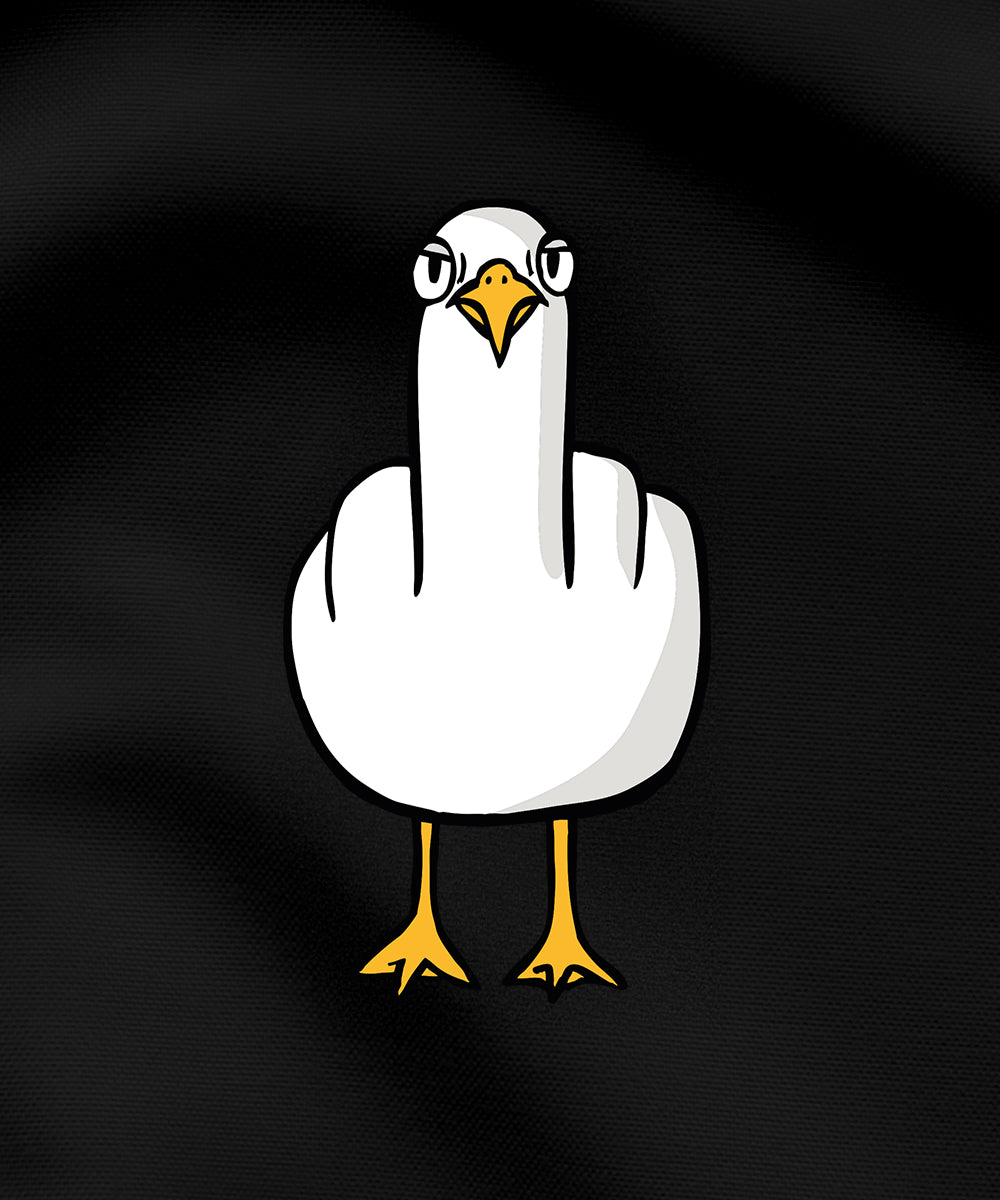 - Mit frechem Möwen-Motiv, das Humor und Maritime verbindet – ein echter Blickfang