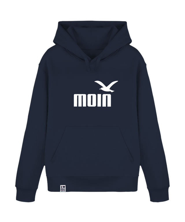Spüre die frische Brise der Küste mit unserem unisex Organic Hoodie „Moin“ – ein lässiges Statement für alle, die das Meer und nordische Gelassenheit lieben. Das zeitlose Marineblau mit dem klaren weißen Schriftzug "moin" und der eleganten Möwe bringt den entspannten Lifestyle der Küste direkt in deinen Alltag.