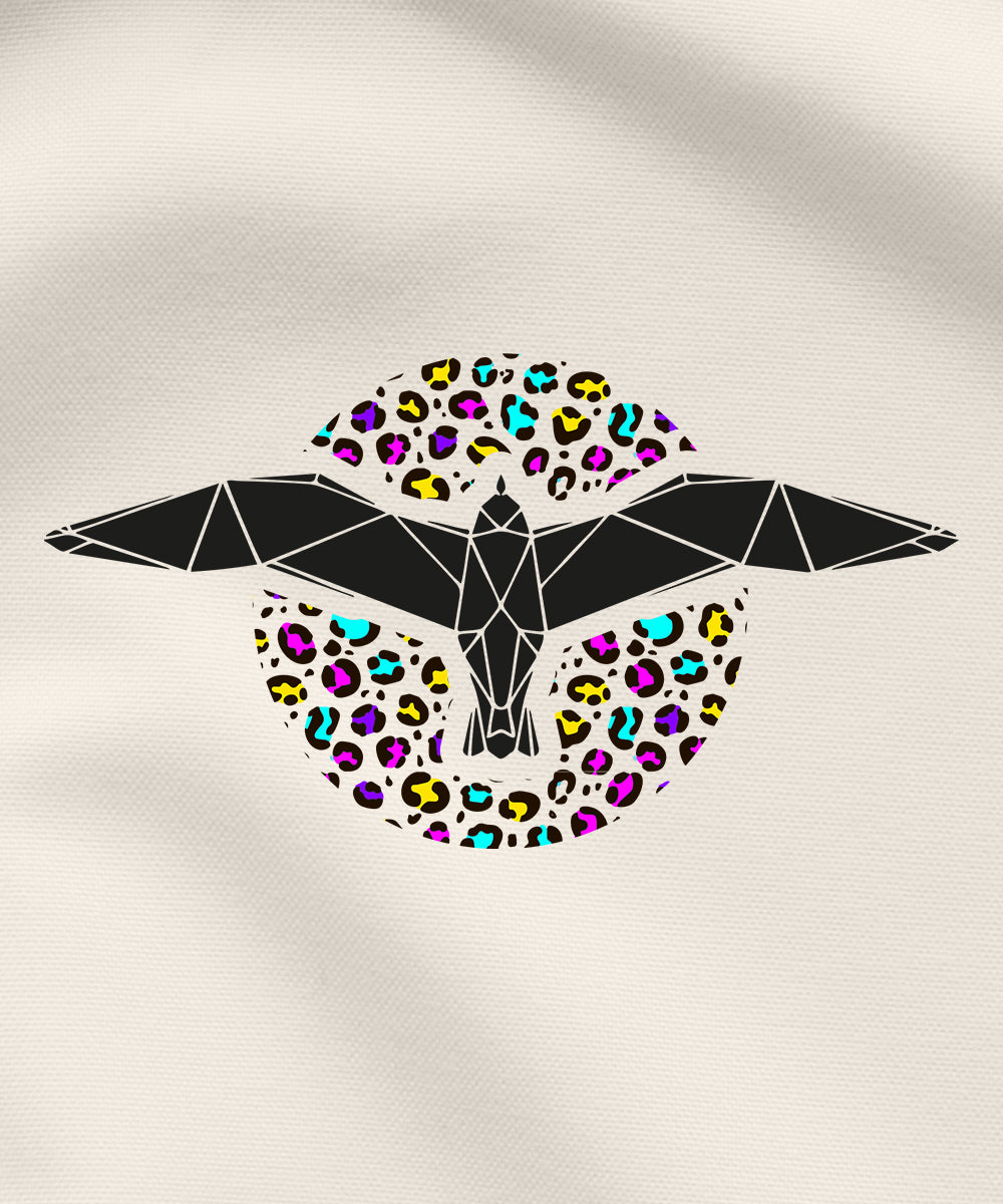 - Geometrisch-abstraktes Tiermotiv, das Freiheit und Stärke symbolisiert