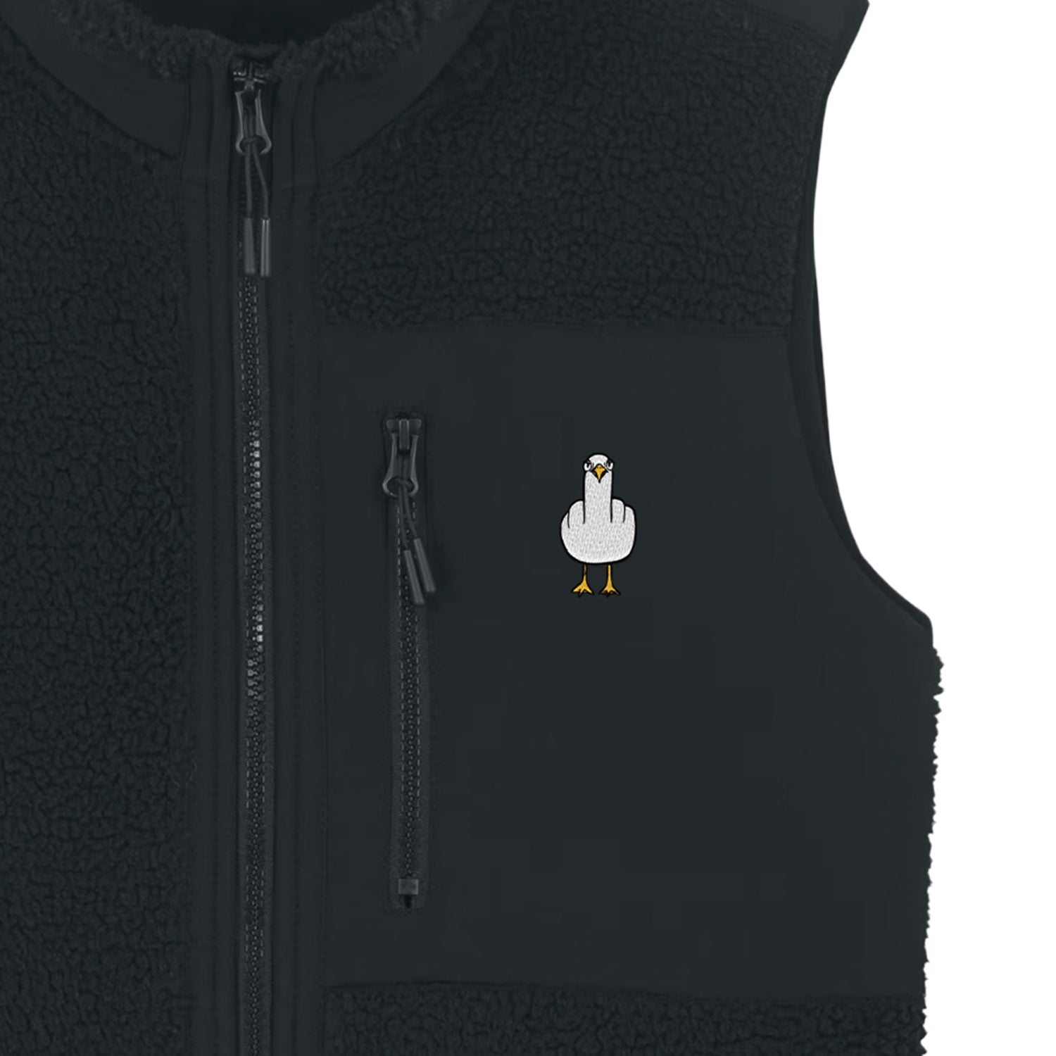 Diese Teddyweste bringt nordische Coolness und eine Prise frechen Charme zusammen. Mit dem markanten Möwen-Design, das schelmisch den Mittelfinger zeigt, setzt du ein mutiges Statement – ohne dabei die Leichtigkeit und Lebensfreude der Küste zu verlieren.