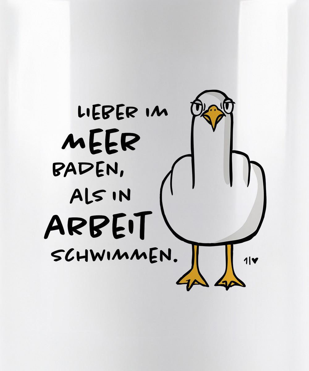 Diese Edelstahl Trinkflasche bringt mit ihrer frechen Möwe nicht nur Stil, sondern auch eine ordentliche Portion Urlaubsfeeling in deinen Alltag. Das minimalistisch-gezeichnete Möwen-Design mit provokanter Flügelgeste versprüht Lebensfreude und rebellischen Charme – perfekt für alle Meerverliebten, die dem Stress mit Humor begegnen.