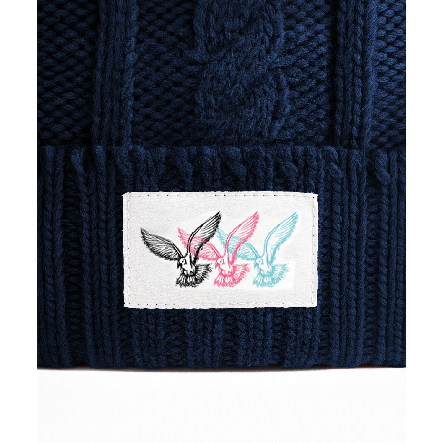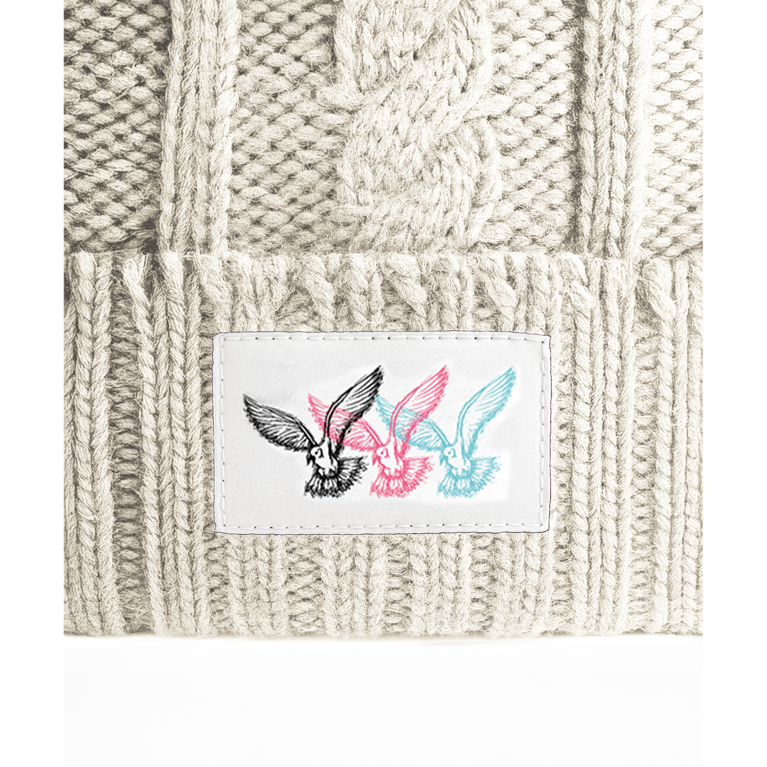 - Charismatisches Weblabel mit dreifachem Möwen-Motiv in Schwarz, Pink und Türkis – Sinnbild für Freiheit und Lebensfreude